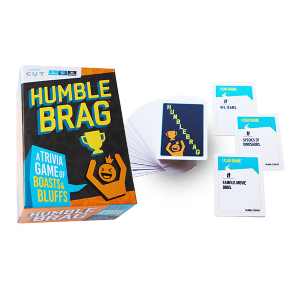Players will boast and brag their way through a variety of trivia topics, ranging from geography to rap music to Simpsons characters, in a tense game of one-upsmanship.